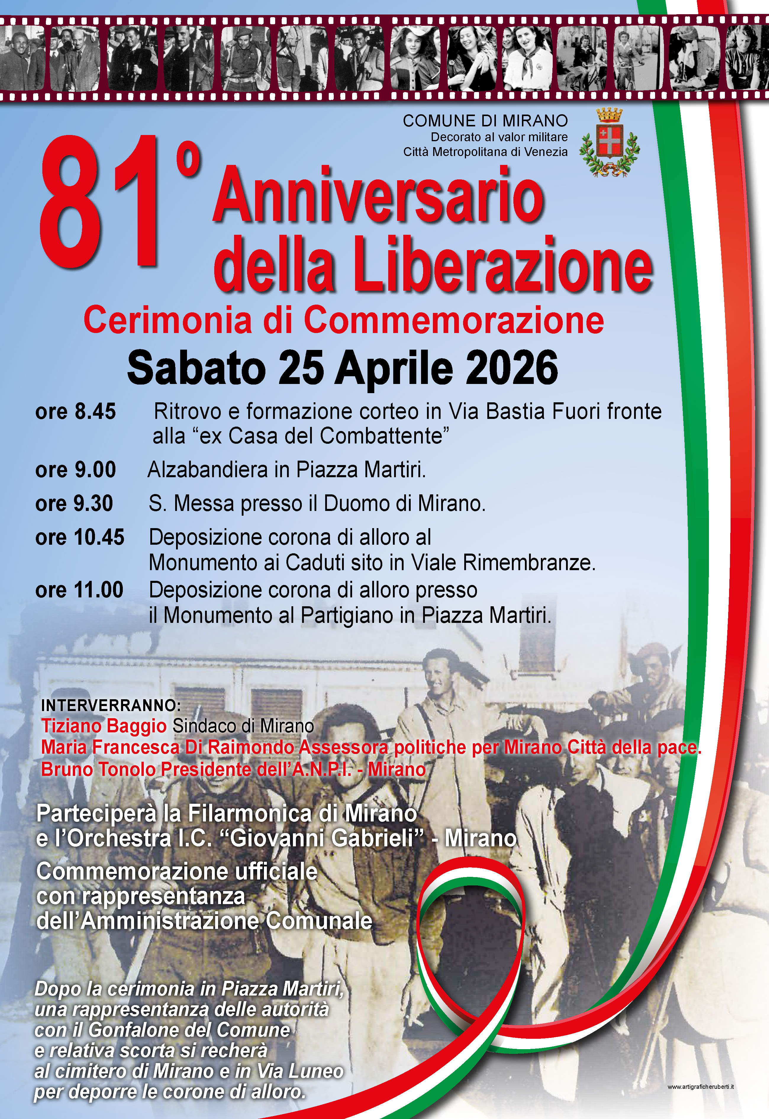 1) Programma 81° anniversario della Liberazione sabato 25 aprile 2026 a Mirano