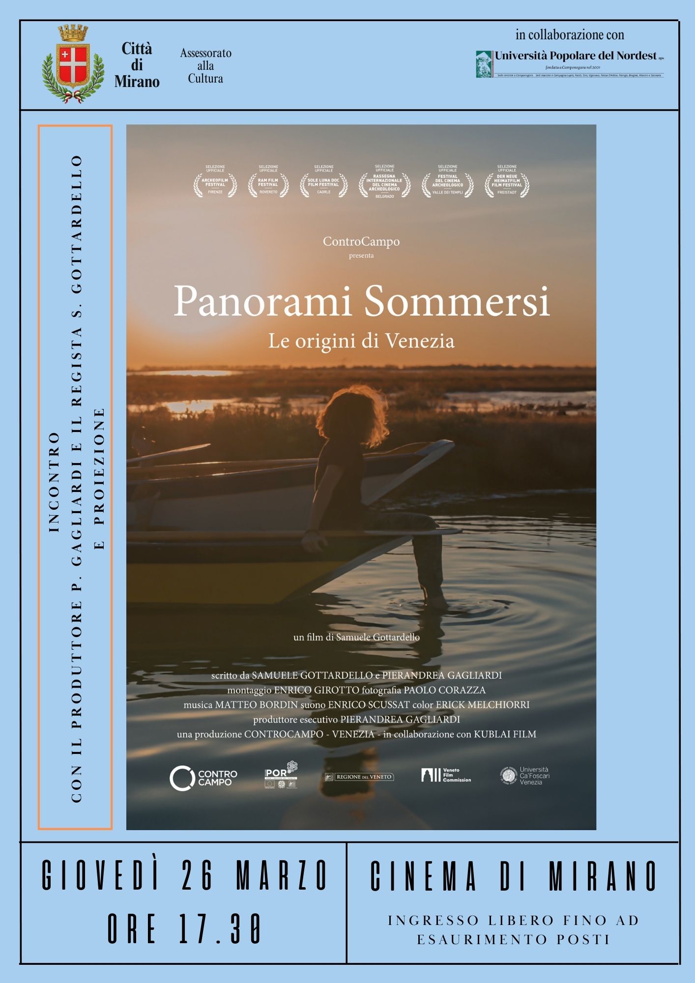 Proiezione film "Panorami Sommersi. Le origini di Venezia" con il regista Samuele Gottardello e il produttore Pierandrea Gagliardi
