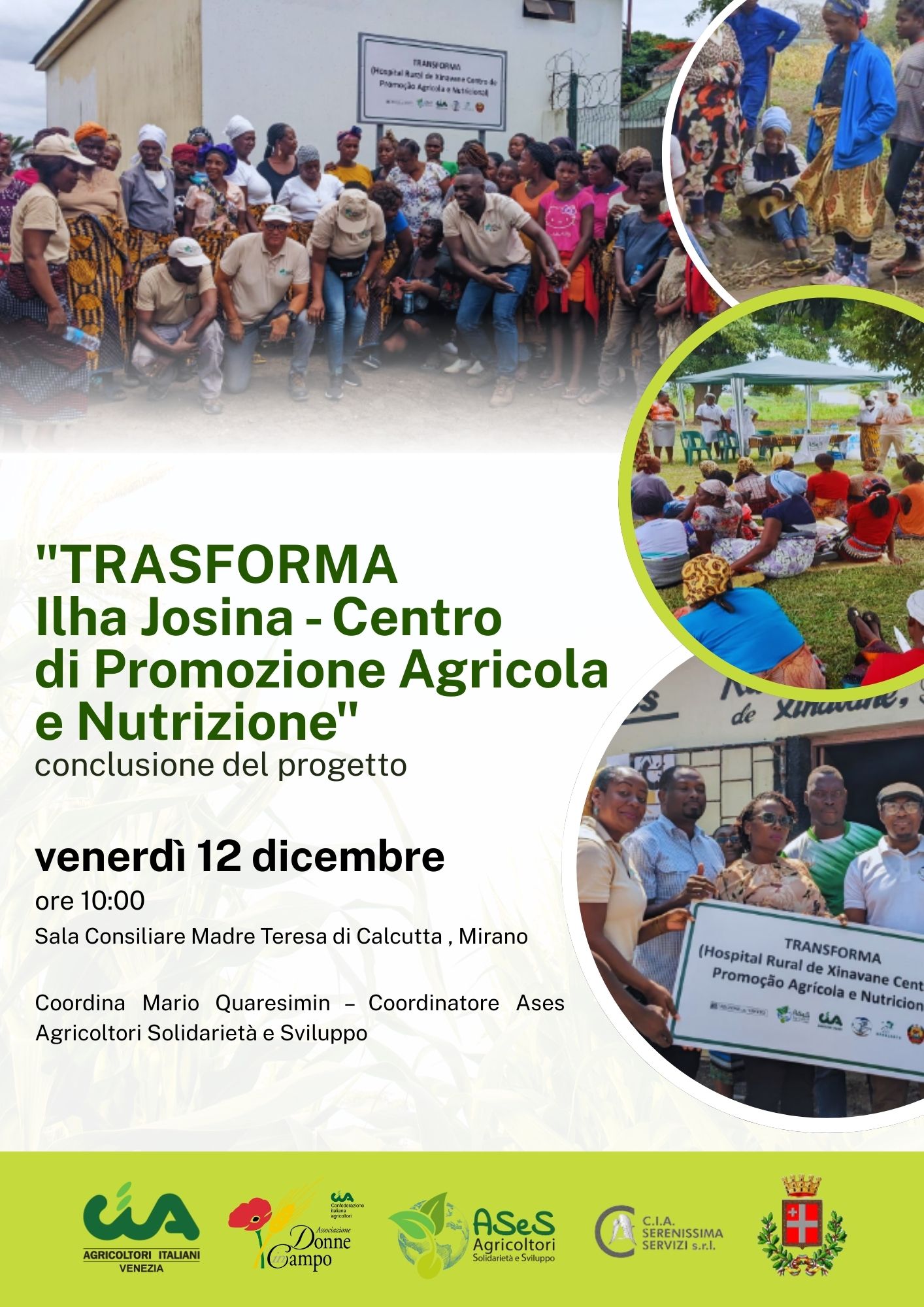 Venerdì 12 dicembre 2025 alle ore 10.00, presso la Sala Consiliare Madre Teresa di Calcutta, nella corte Errera, in via Bastia Fuori n. 58, si terrà l’evento conclusivo del progetto “TRASFORMA – Ilha Josina | Centro di Promozione Agricola e Nutrizione”, realizzato in Mozambico.