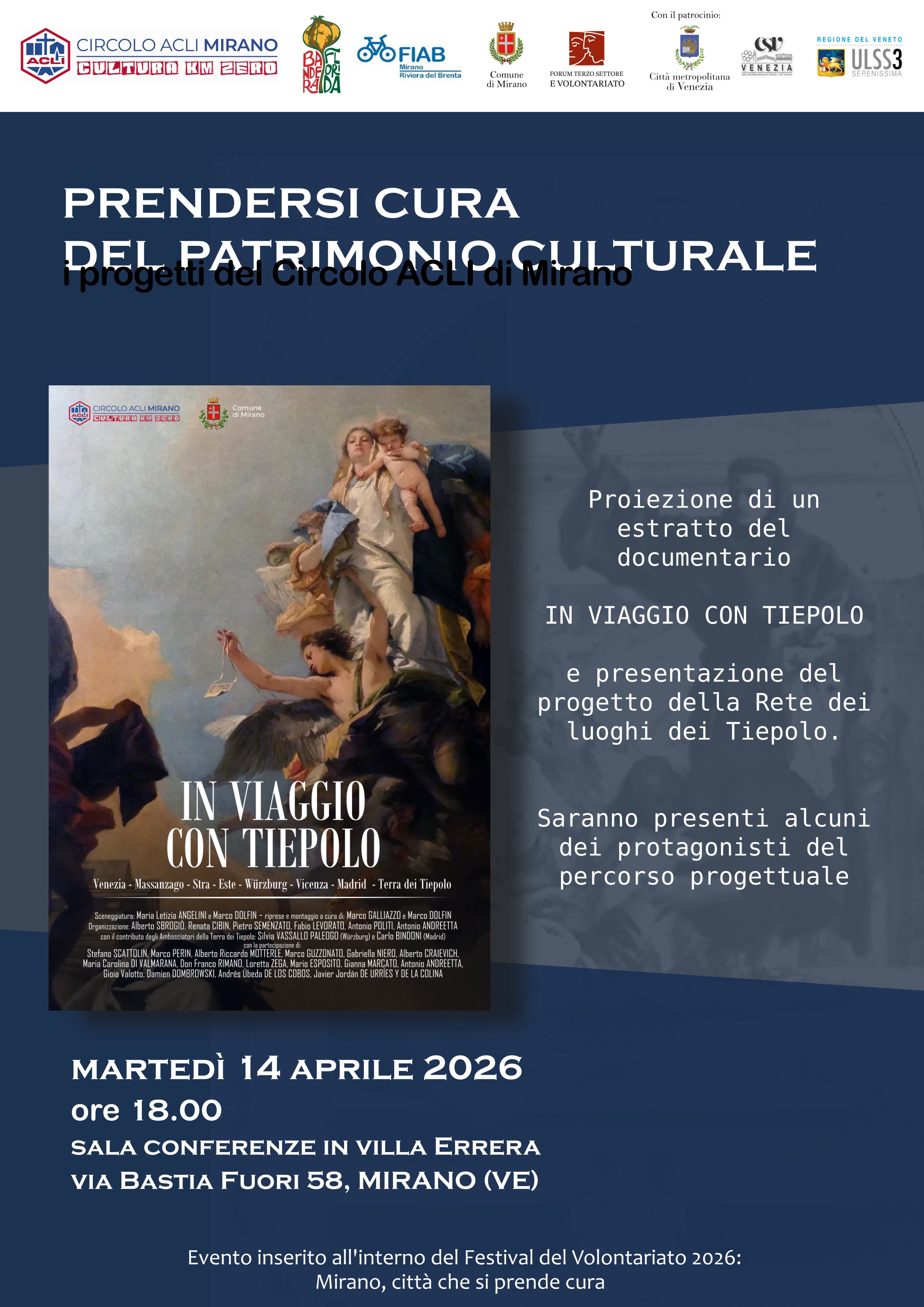 Prendersi cura del patrimonio artistico: proiezione del documentario In viaggio con Tiepolo e presentazione della Rete dei luoghi del Tiepolo - Venerdì 17/04 ore 17.00